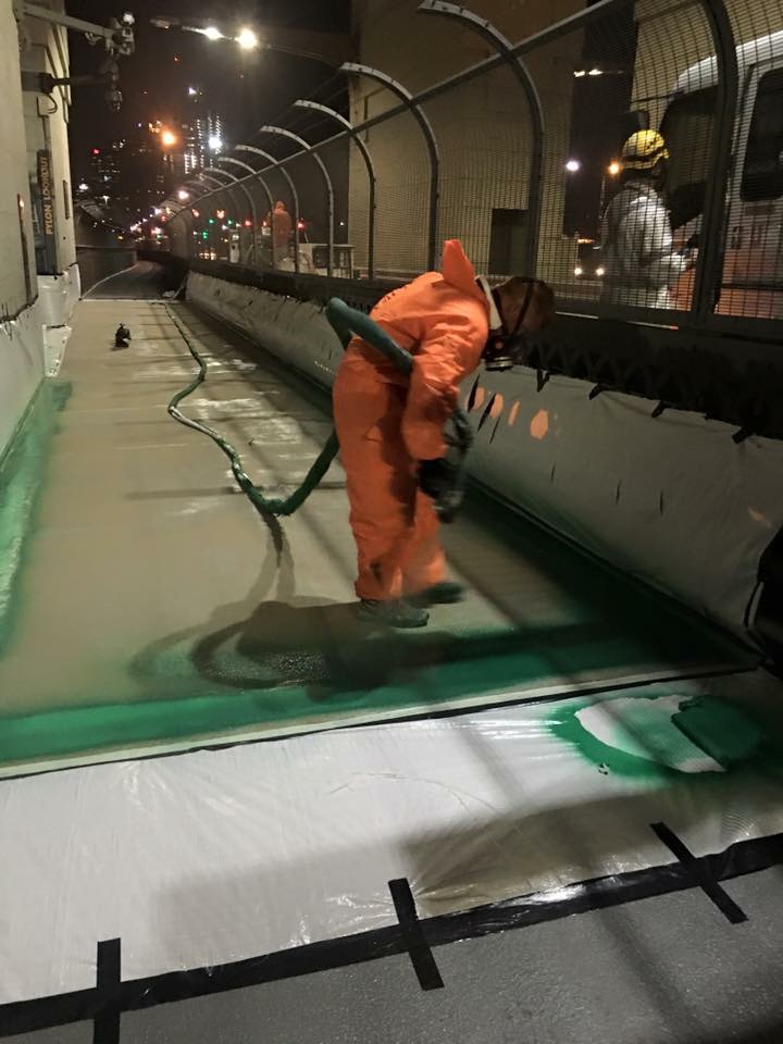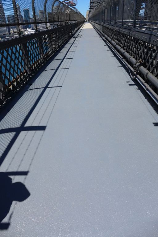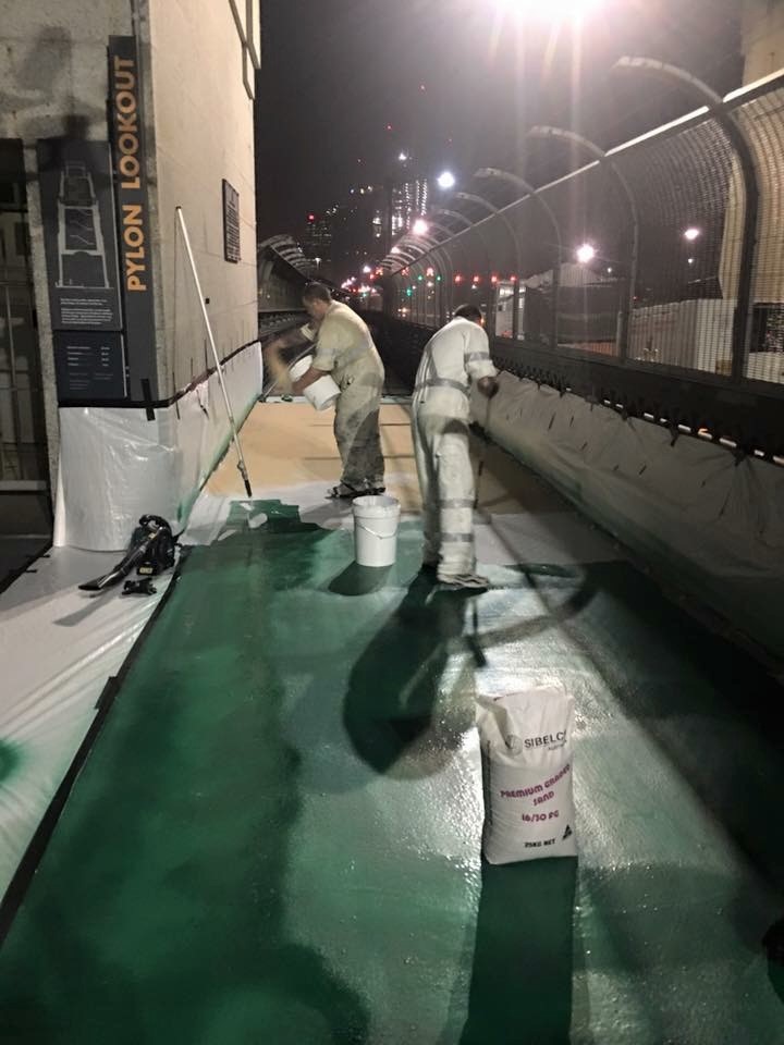 Envirosystems was contracted to repair and reinstate the cracked walkway and cycleway surfaces on the Sydney Harbour Bridge main deck, and to prepare and apply a UV-resistant trafficable waterproofing system to the exposed areas. The comprehensive specification detailed crack repair procedures, substrate preparation, priming and installation of the Envirosystems Trafficable Waterproofing Membrane System.